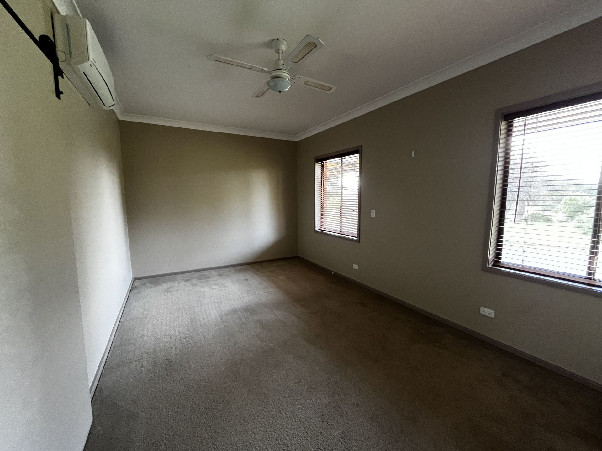 - Four bedrooms with robes. Main with ensuite and split system