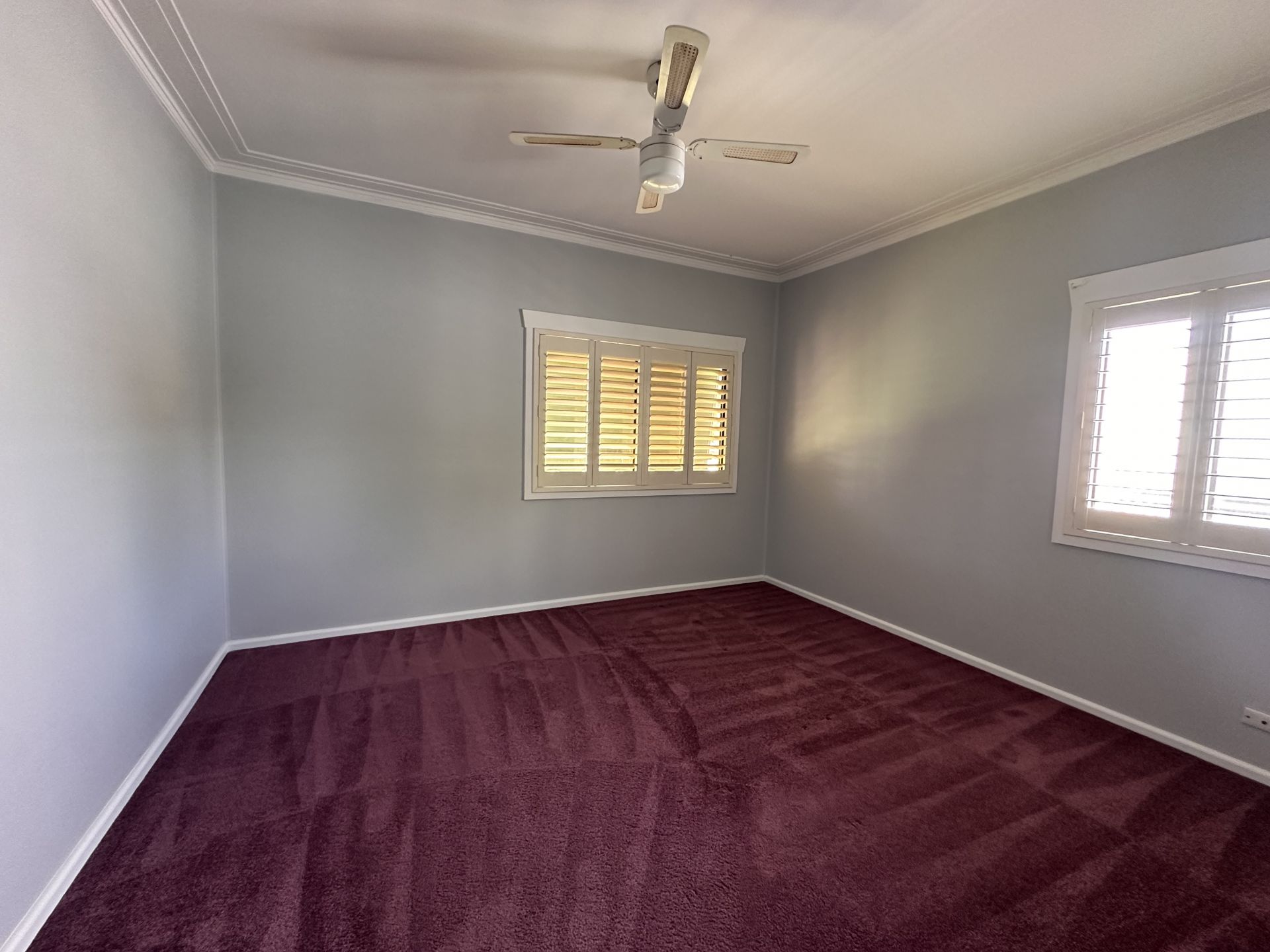 - Three bedrooms, two including ceiling fans