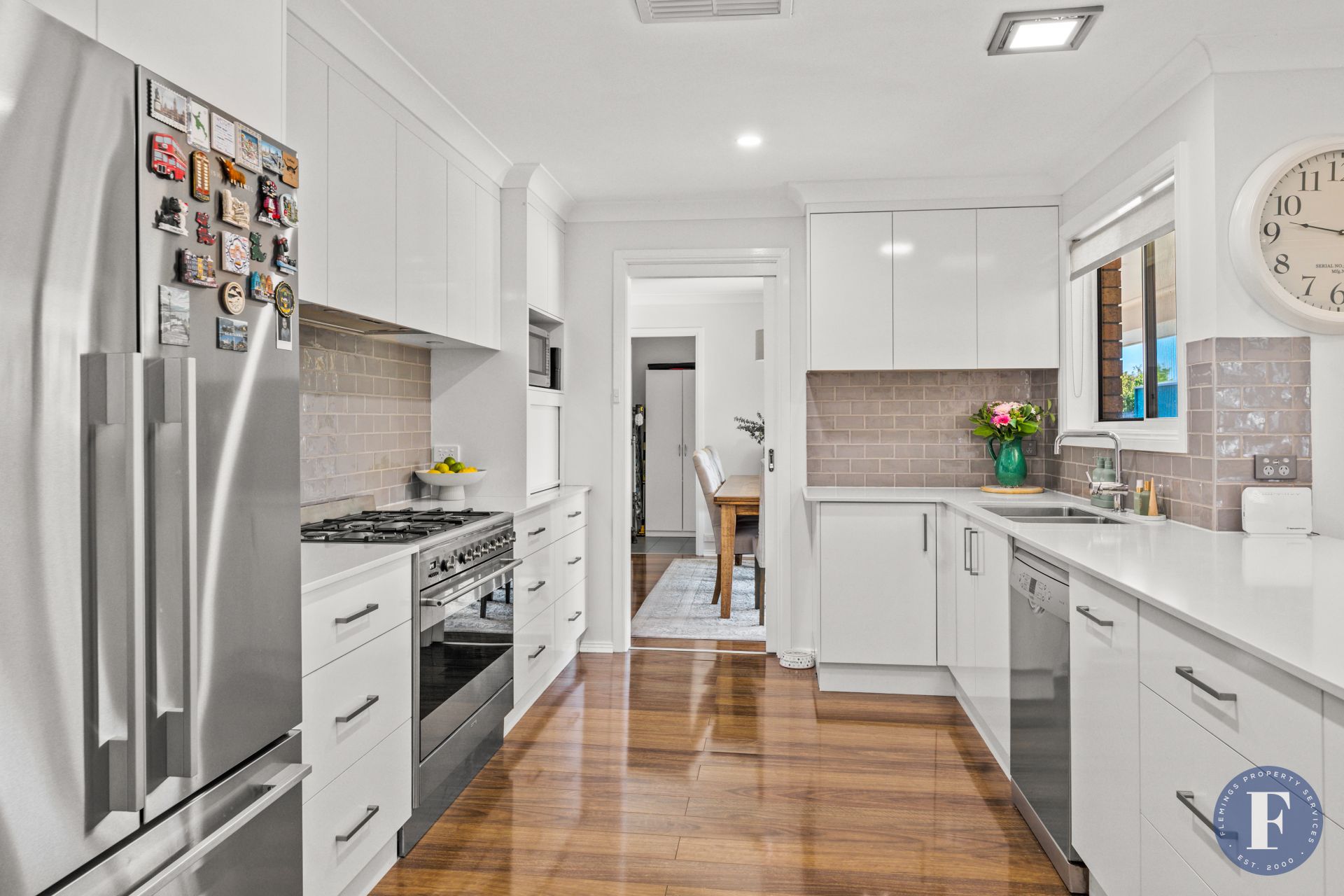 - Stunning kitchen with stone benchtops, stainless steel oven, and ample storage