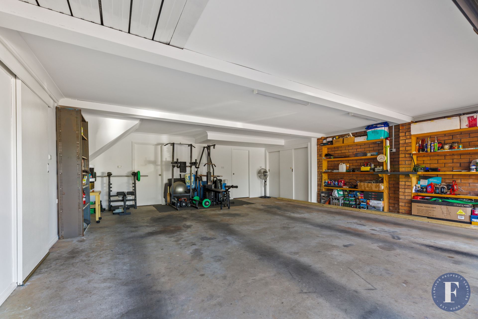 - Two-car garage with remote doors, internal access, and extensive storage options