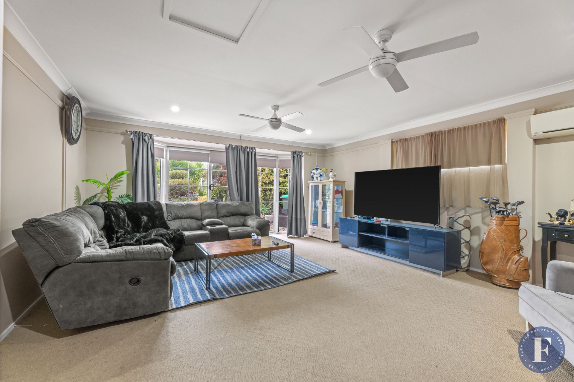 - Comfort year-round with two split system reverse cycle air conditioning, evaporative cooling, ceiling fans and gas bayonets