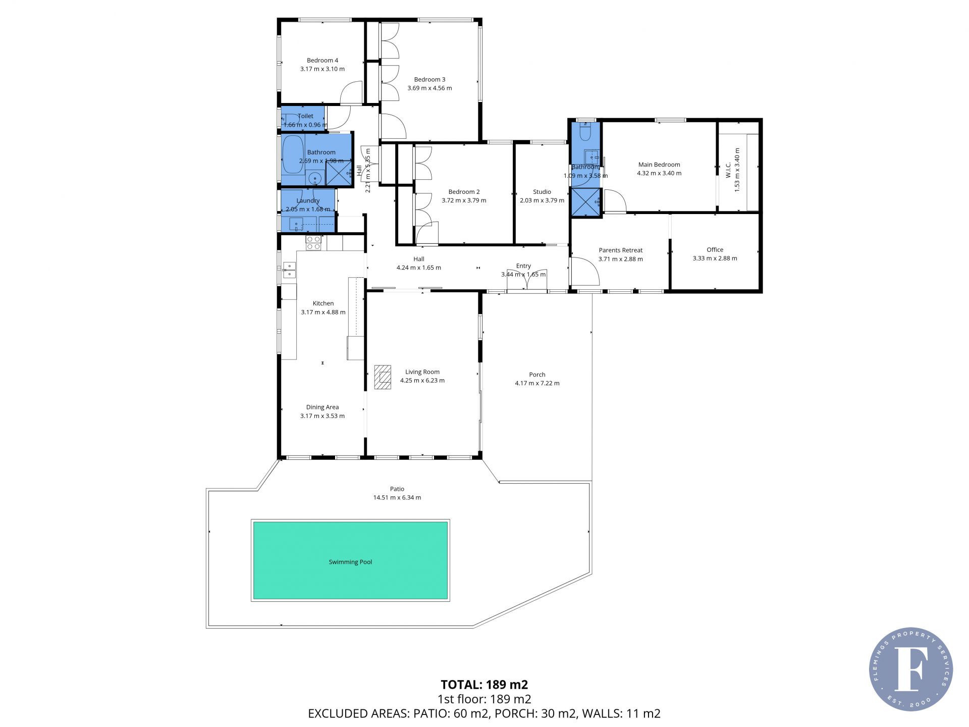 - Two living spaces, including a light-filled lounge, dining and a private parents' retreat