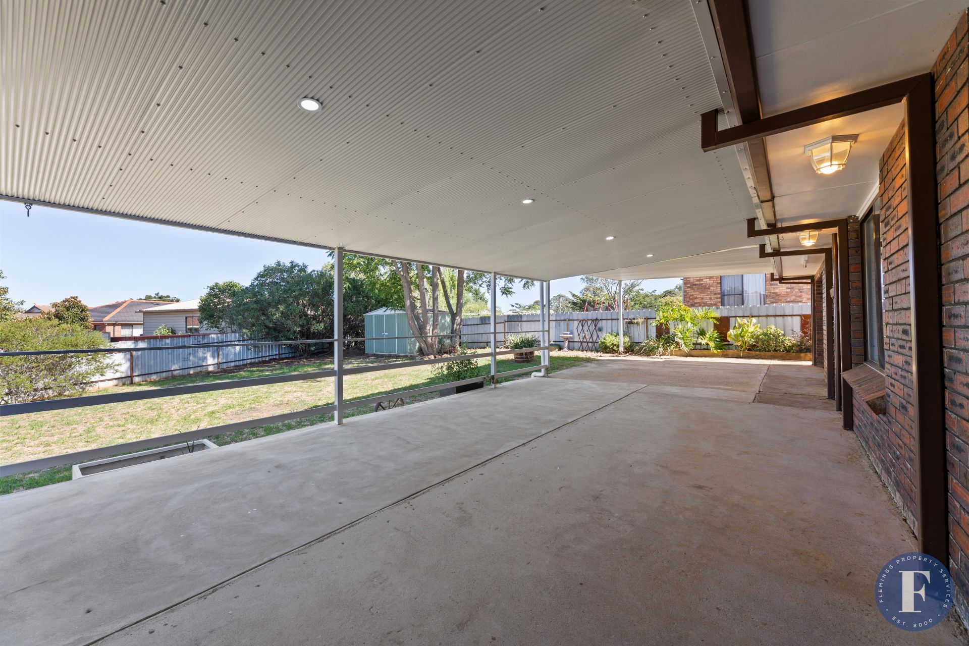 - Private, fully fenced backyard with garden shed