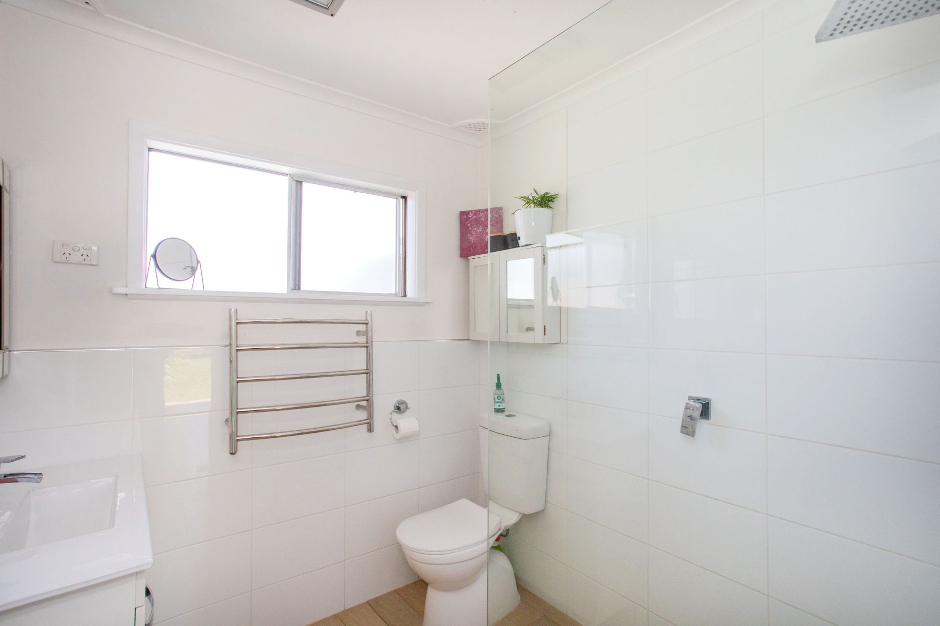 - Renovated bathroom with sleek frameless shower screen design