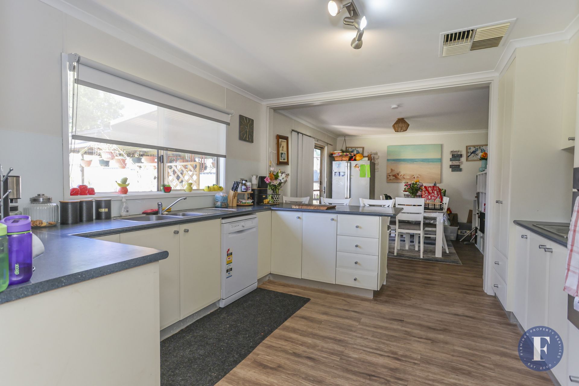 - Well-equipped kitchen boasting stainless steel appliances including a dishwasher, breakfast bench and adjoining dining area