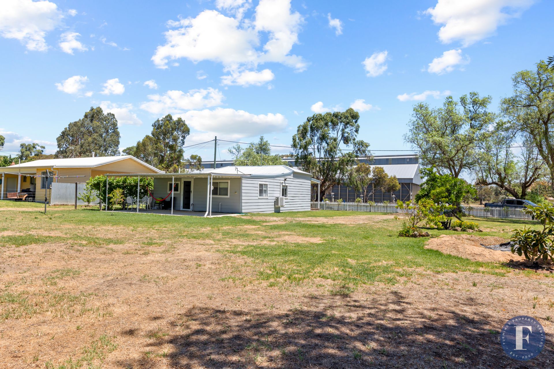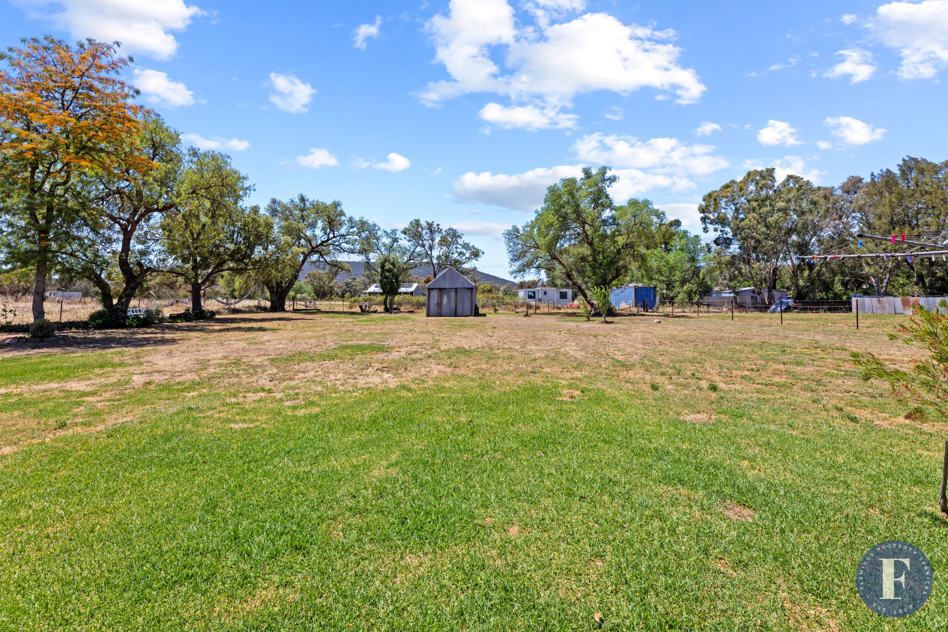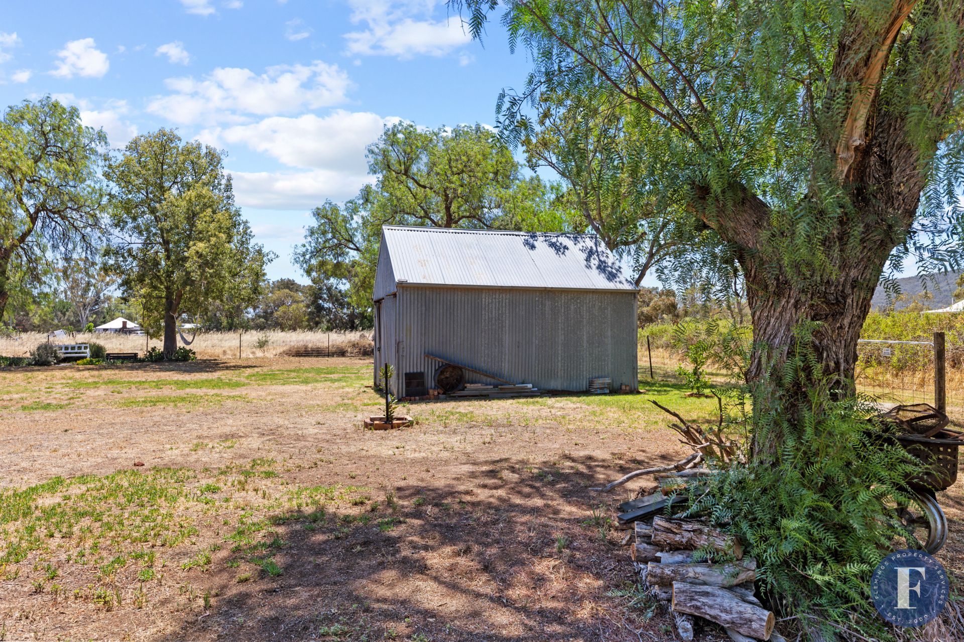 - Older-style corrugated iron shed located at the rear of the property