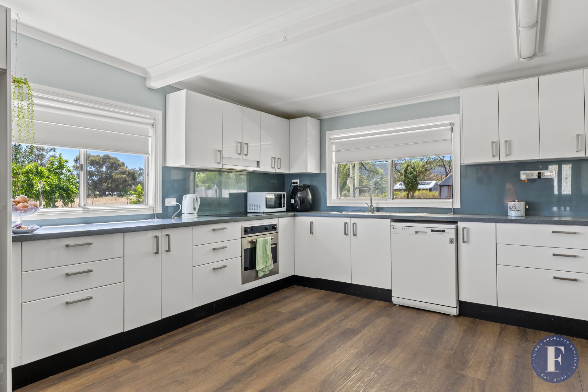 - Open-plan living area finished with stylish and practical vinyl plank flooring