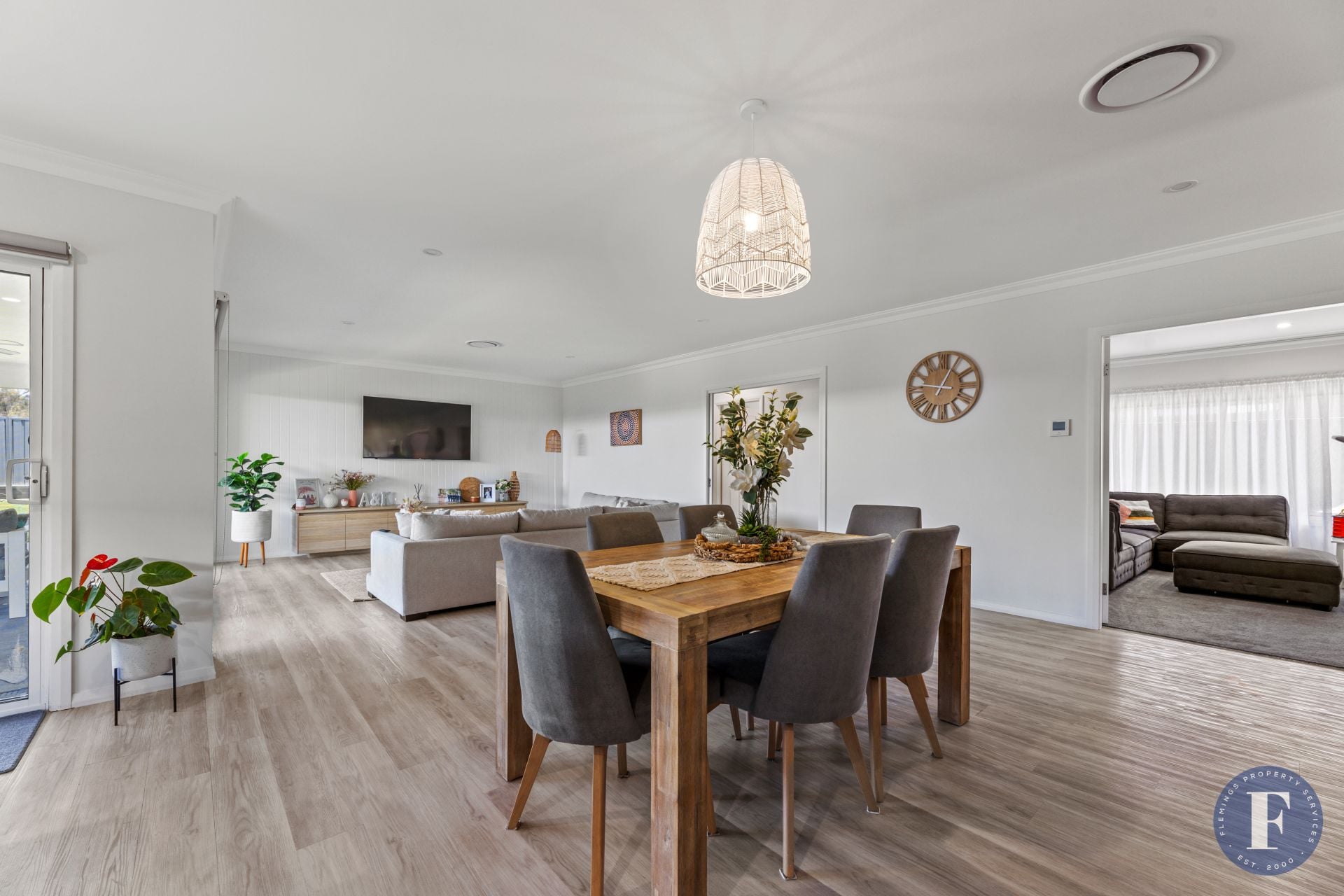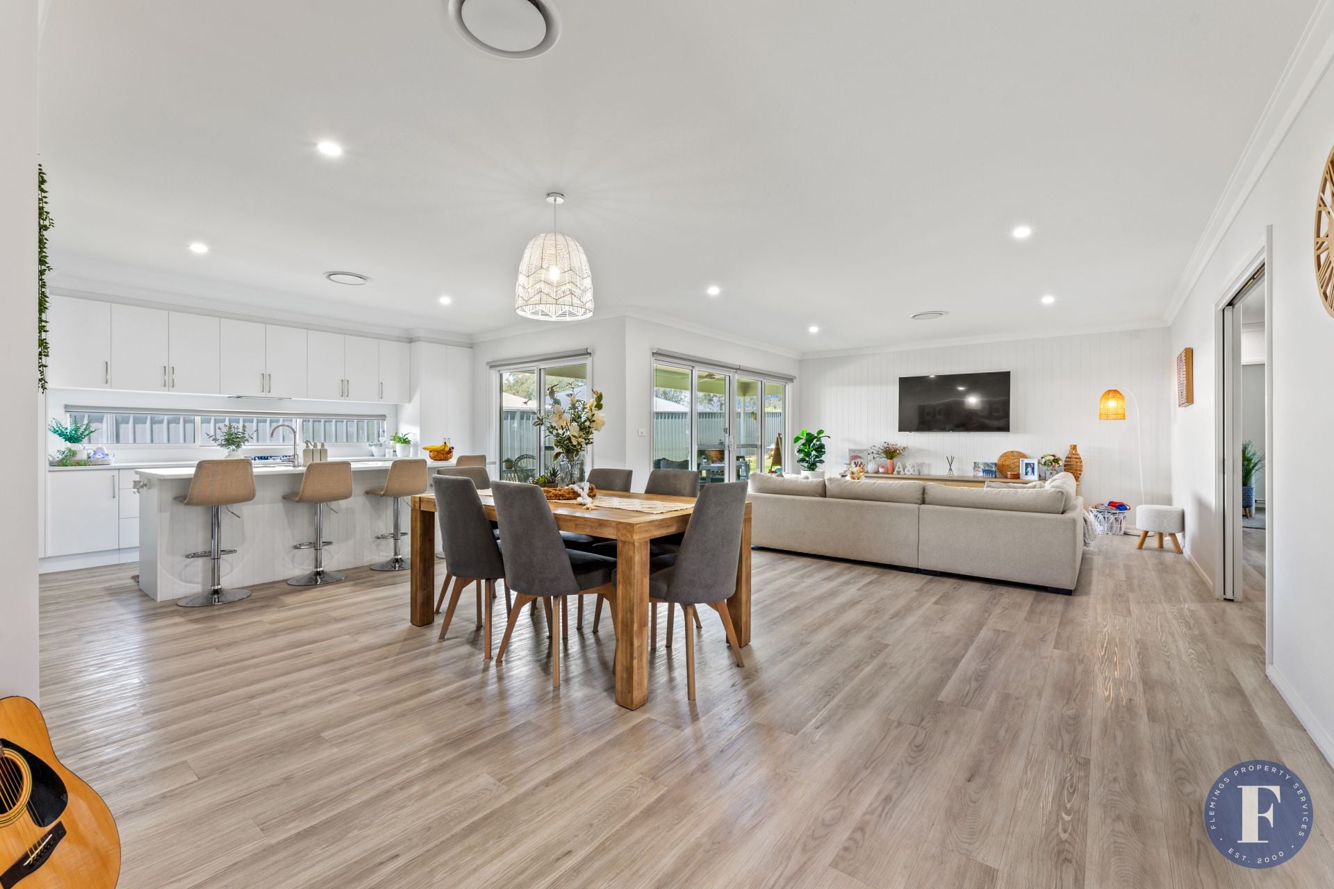 - Open-plan kitchen, living, and dining area, flooded with natural light