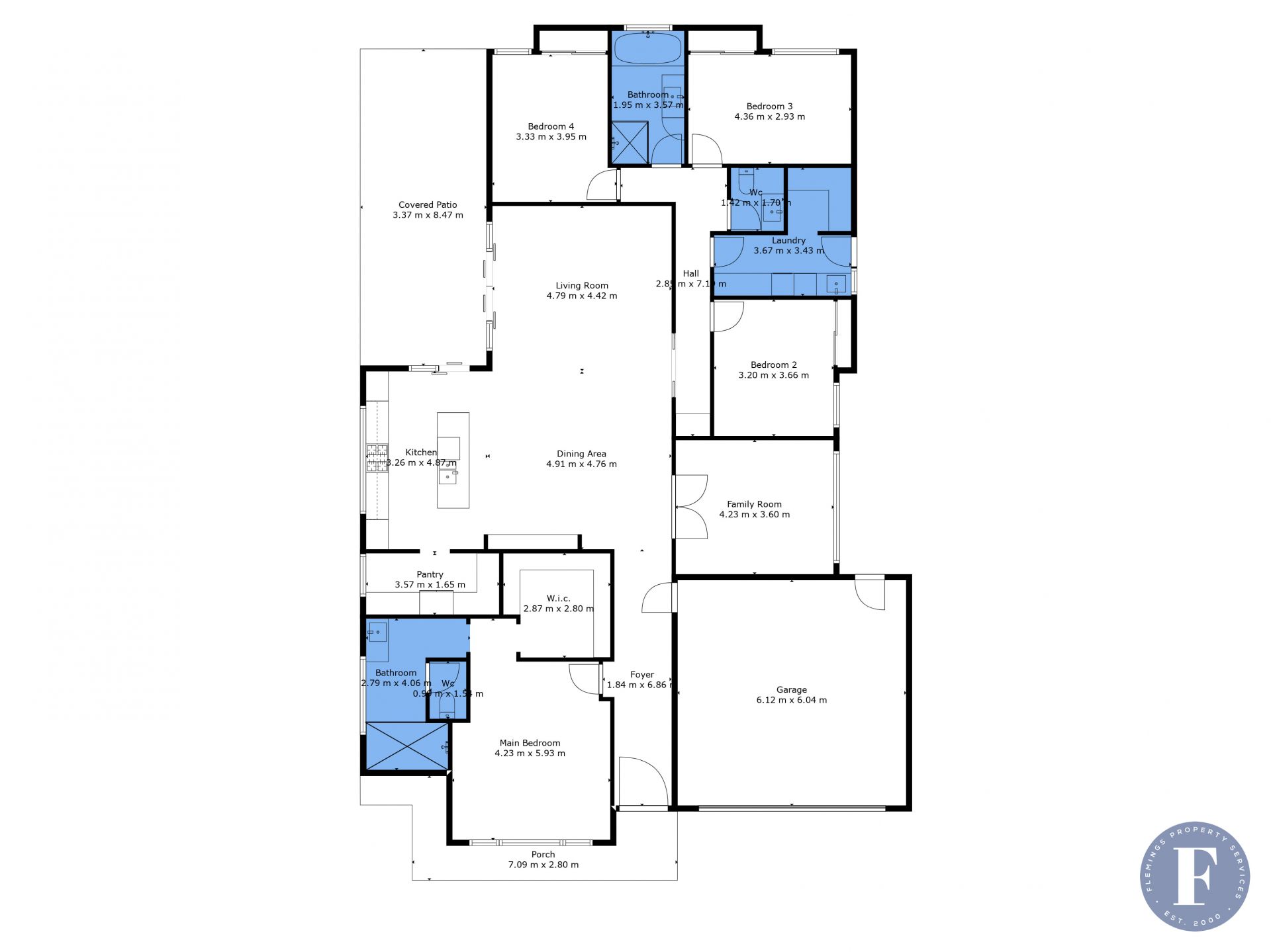 - Four spacious bedrooms, all with built-in wardrobes