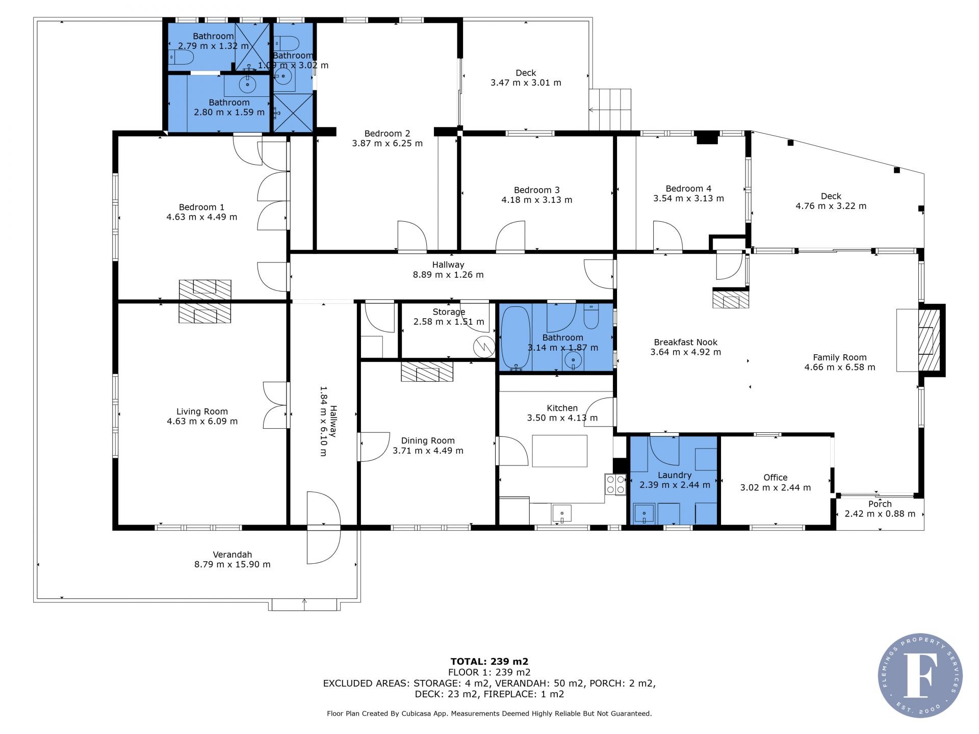 - Four bedrooms, two with ensuites