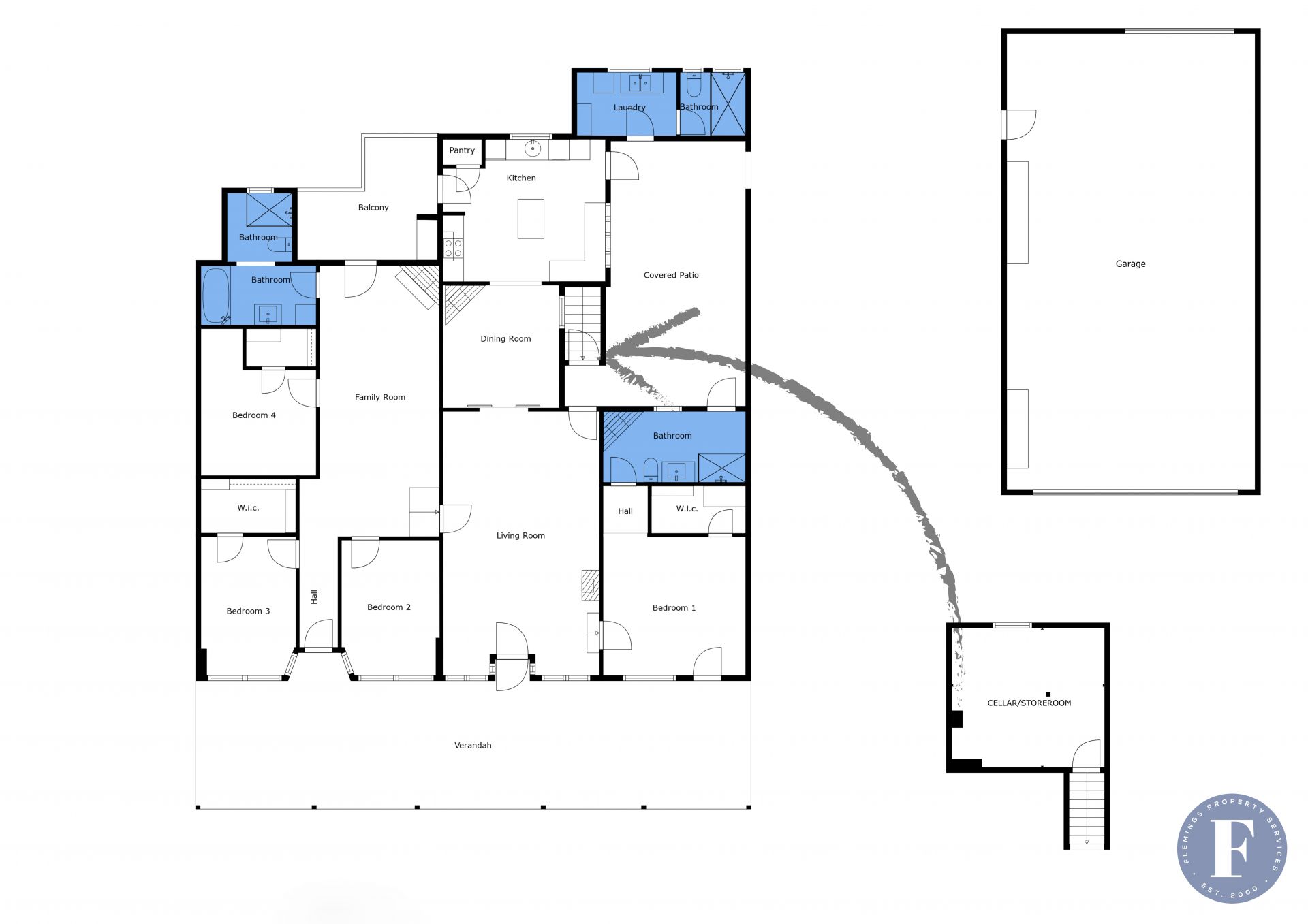 - Expansive enclosed outdoor entertaining area with direct access to underground cellar/storage